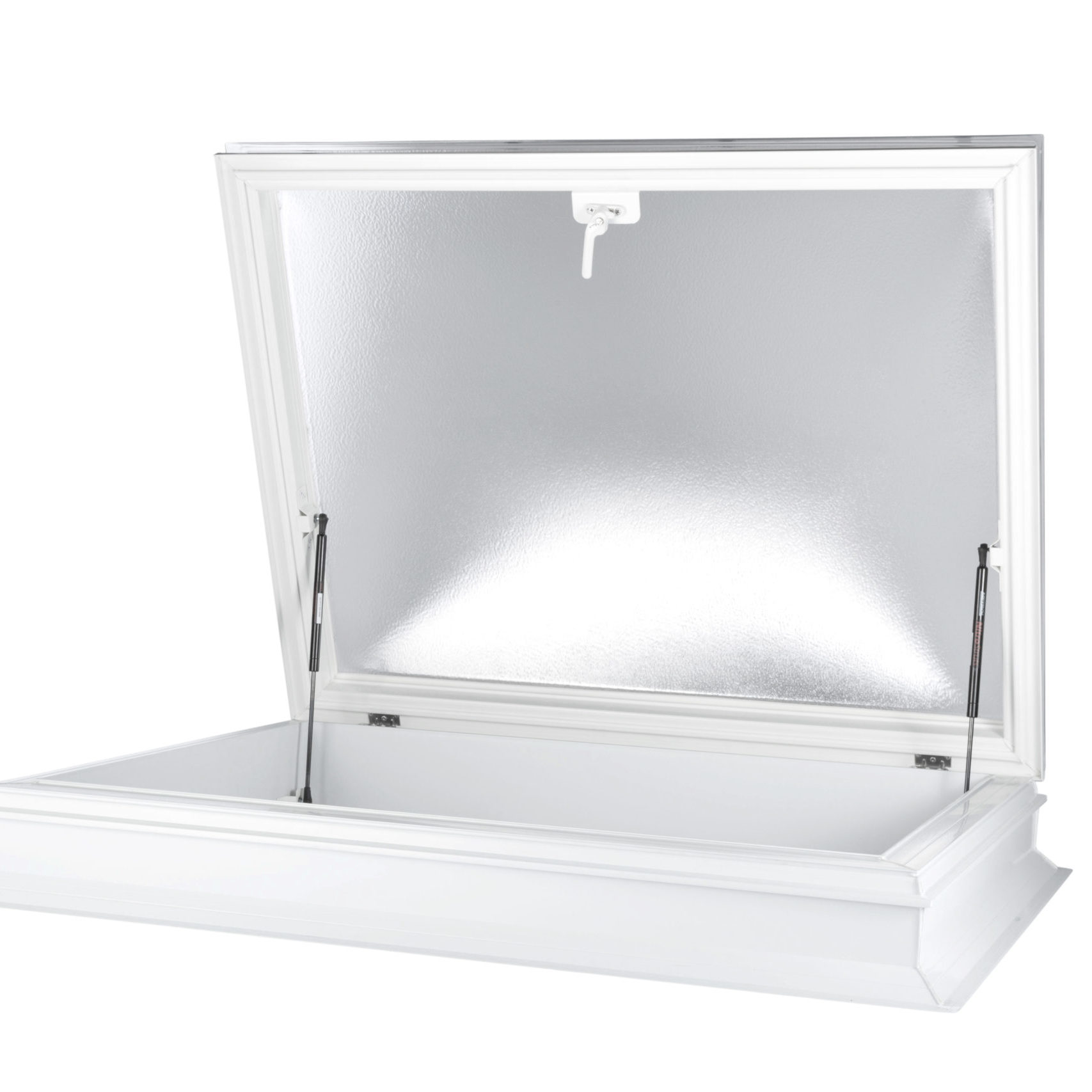 Used to access the roof area whilst also allowing natural daylight to enter a space, access hatches are available in various sizes. Polycarbonate skins can be double, triple or quadruple – clear or diffused. Each come with either 160 mm vertical upstand (recommended for frequent use) or 150 mm splayed upstand (recommended for occasional use).