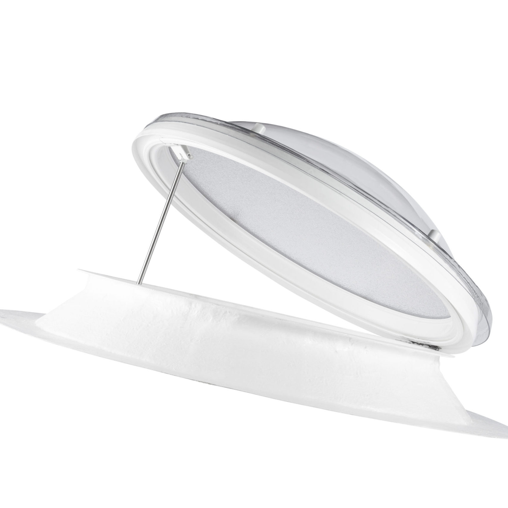 The COXDOME Classic manual opening rooflight is supplied with a spindle gear to be operated from below and using a winding pole (included). The maximum opening is approximately 300 mm.