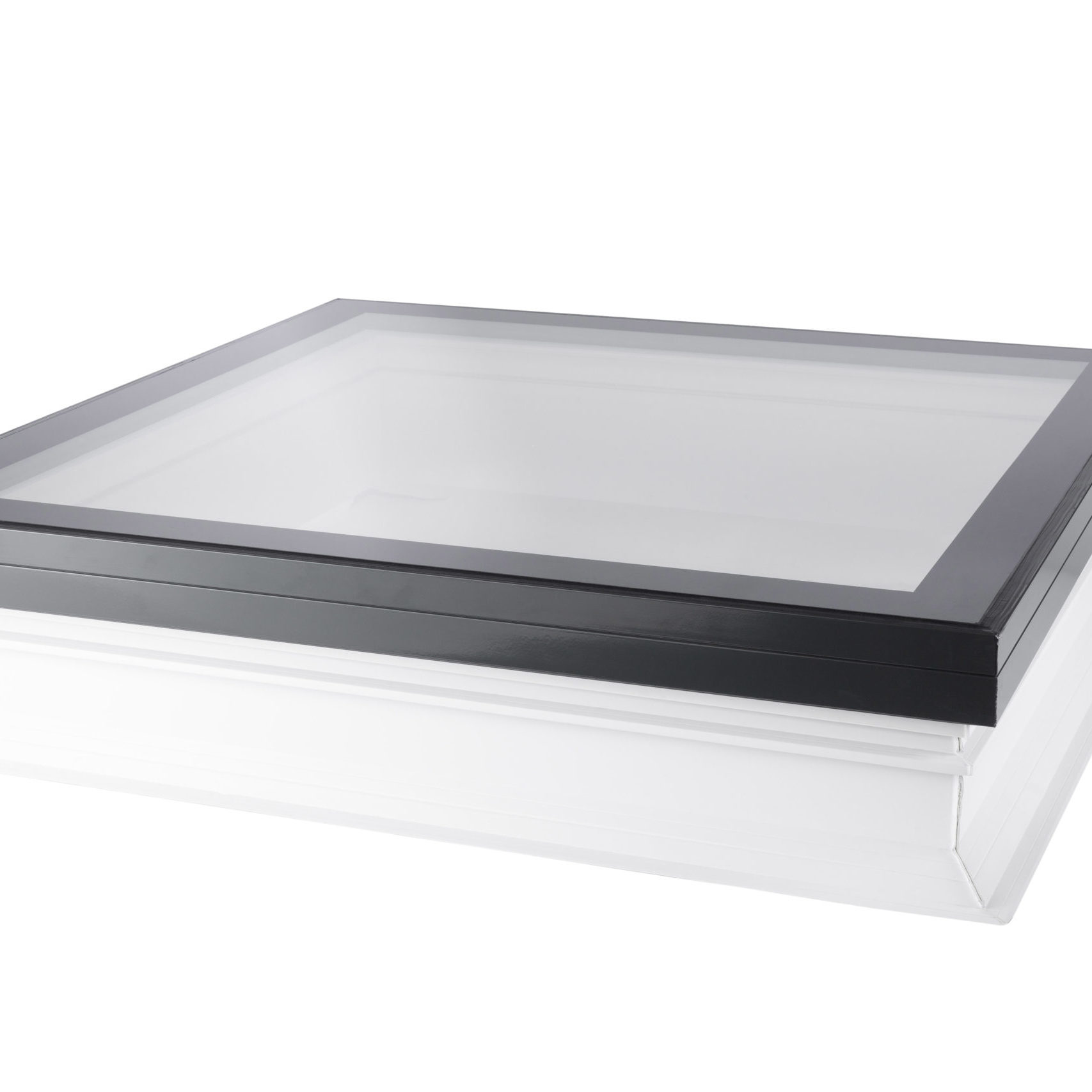 | Unventilated single-pane flat glass rooflight, fixed to builders upstand on a flat roof. | ||